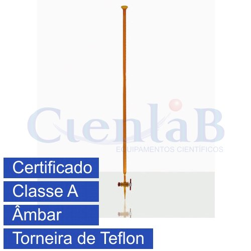 Bureta graduada com torneira TEFLON ÂMBAR CLASSE A CERTIFICADO RASTREAVEL, capacidade 50ml