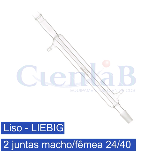 Condensador de Liebig tipo liso com 2 juntas 24/40 macho e fêmea , tamanho 600 mm