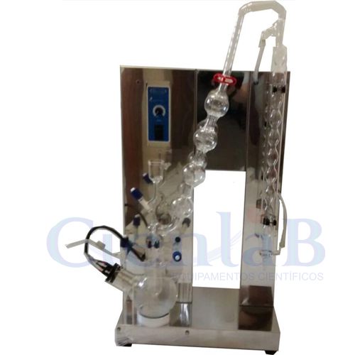 Vidrarias: Condensador tipo bola e caldeira com copo dosador, sistema de abastecimento, válvula stop-flow e dreno para limpeza construídos em vidro borossilicato.