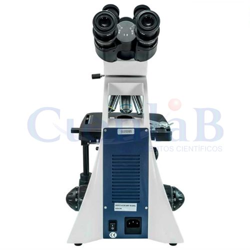 Sistema Óptico – Revólver reverso equipado com 4 objetivas planacromáticas 4x, 10x, 40x (retrátil) e 100x (retrátil e imersão).