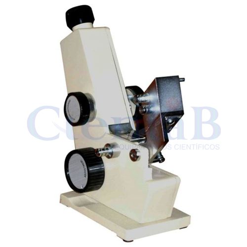 Instrumento para avaliar o índice de refração (nD) e a dispersão óptica média (NF-NC) de substâncias liquidas, pastosas, pós e sólidos. Podem ser utilizadas soluções aquosas, alcoólicas e etéreas, óleos, ceras, alimentos, xaropes, soluções açucaradas, gorduras, óleos alimentícios, tintas, produtos sintéticos.