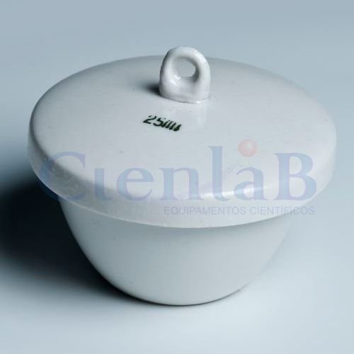 Cadinho de Porcelana - Forma Baixa - Com tampa. Capacidade: 30ml. Dimensões: 52 x 31 mm