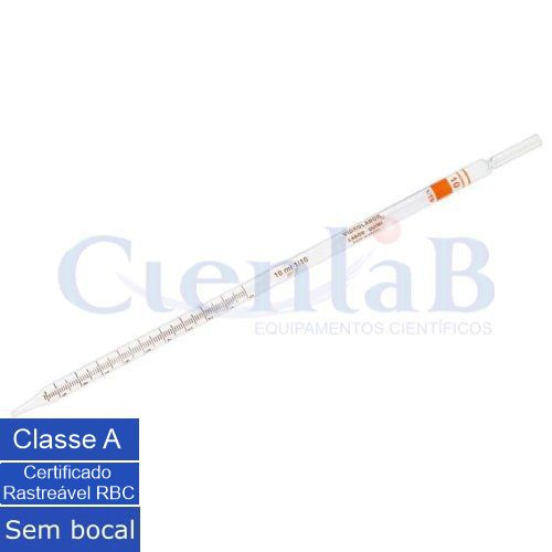 Pipeta Sorológica Graduada Esgotamento Total sem Bocal CLASSE 'A' Divisão 1/10 - Certificado Rastreável em 3 Pontos RBC - Capacidade 5ml