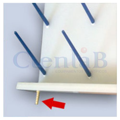 • Possui pinos instalados em ângulo para encaixe das vidrarias