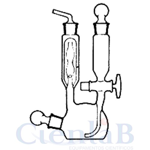 Alcalímetro de Schroedter. Para determinação de bióxido de carbono, peso máximo 100 g, torneira com rosca, junta padrão e rolhas intercambiáveis.