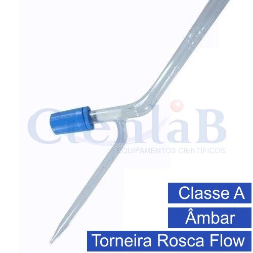 Bureta graduada c/ torneira rosca flow Âmbar CLASSE A, capacidade 50ml