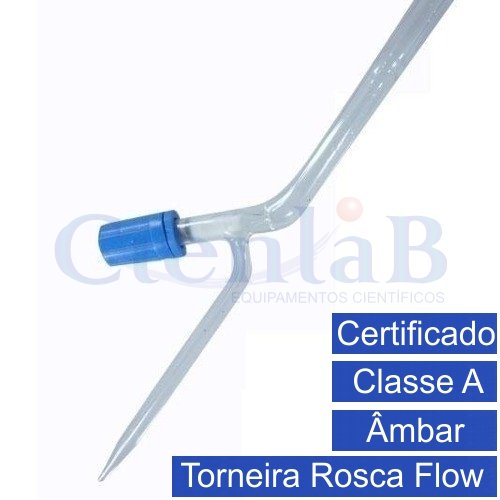 Bureta graduada c/ torn. rosca flow Âmbar CLASSE 'A' CERTIFICADO RASTREAVEL, capacidade 100ml