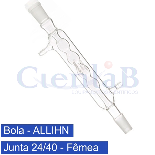 Condensador Allihn tipo bola com 1 junta 24/40 fêmea, tamanho 500 mm
