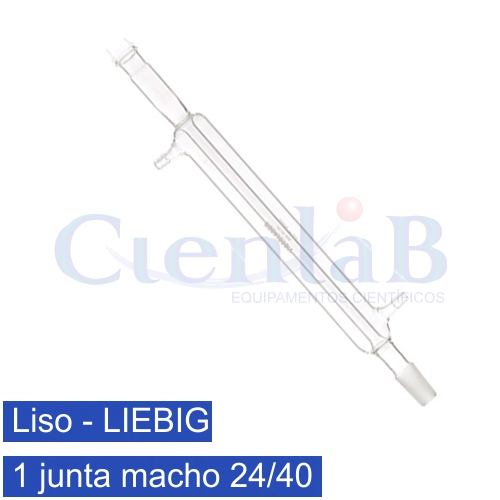 Condensador de Liebig tipo liso com 1 junta 24/40 macho, tamanho 600 mm