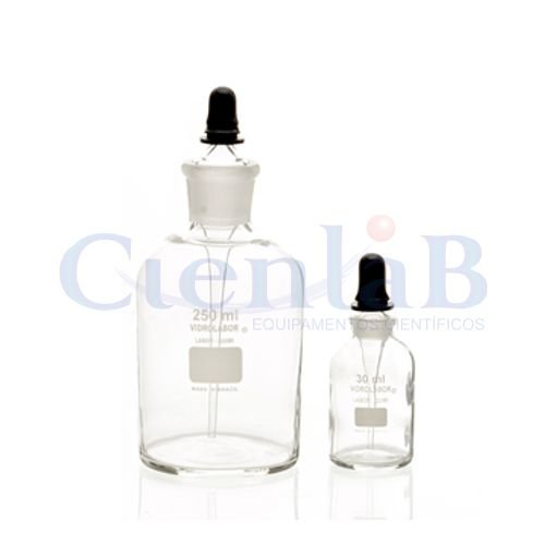 Frasco Conta-Gotas INCOLOR com pipeta esmerilhada e tetina de borracha, capacidade 250ml