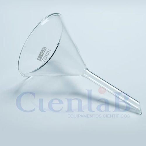 Funil analítico liso com haste curta - Ângulo 60° - Borossilicato, Ø120mm