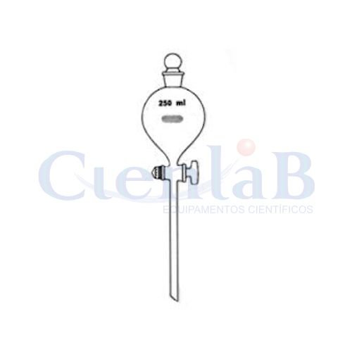 Funil Separação Bola rolha e torneira vidro, capacidade 60ml