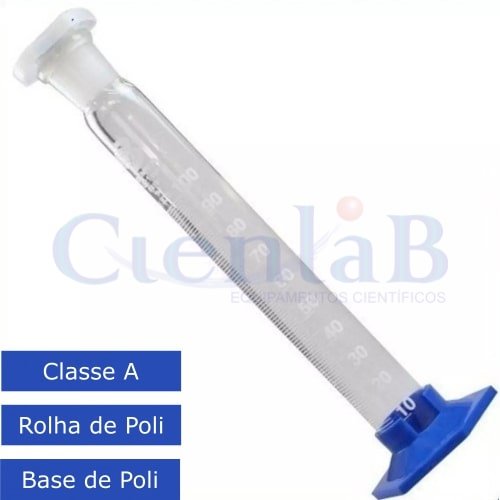 Proveta de Vidro graduada base e rolha poli CLASSE 'A' gravação baixo relevo. Capacidade 200ml