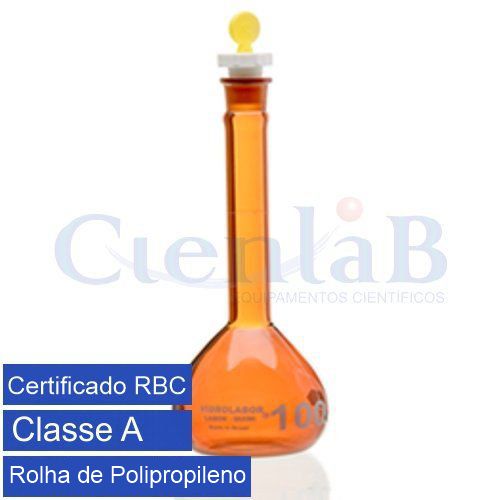Balão Volumétrico com Rolha de Poli Âmbar CLASSE A - Certificado de Calibração RBC - Capacidade 5ml